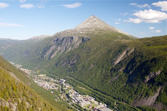 Tam, kad laika prastumti su mama pasivazinejame po apylinkes, Rjukan miestely. Susirandame Rjukan kriokly... Bet koks nusivylimas - is krioklio liko tik plona vandens linijele... Neverta net eiti link jo:( Internete veliau perskaiciau, jog dabar didzioji krioklio srove yra nukreipiama energijai gaminti ir tik kaikuriomis progomis paleidziamas sis, 105m grazuolis visa jega. Tuomet beliko isbandyti kita vietos atrkcija - Krossobanen:) Sy keltuva pastate 1928m, energija gaminanti kompanija, miestelio gyventojams, kad sie ziemomis galetu pakilti i saulute, mat miestelis mazdaug 4men nemato saules. Dabar yra 2 vagoneliai, labai linksmais pavadinimais "melyne" ir "spanguole" :D Mat vienas melynas, o kitas raudonas:) Zmones kaliasi ne tik pasizvalgyti i sleny, bet pasikelus galima taip pat pasivaikcioti ar pasivazineti dviraciais po didziausia Norvegijos nacionalini parka - Hardangervidda. Nuotraukoje Gaustatoppen kalnas.